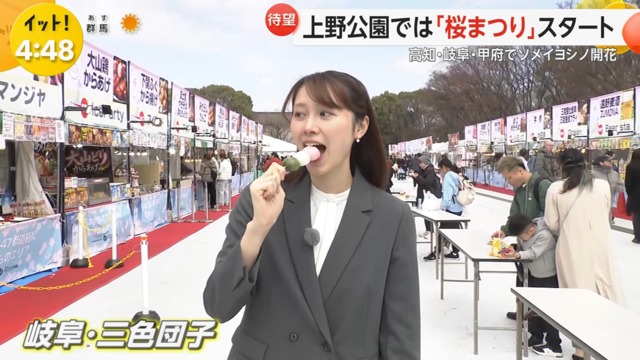 金蝶園総本家(大垣市): 12月下旬〜5月中旬にかけて、よもぎを使用した三色団子を販売。